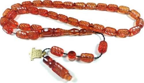 İskeçe Tesbih Murat Ayrancı Usta İşi İmzalı Kalem İşçilikli Swarovski Taşlı Sıkma Kehribar Sertifikalı No 3834