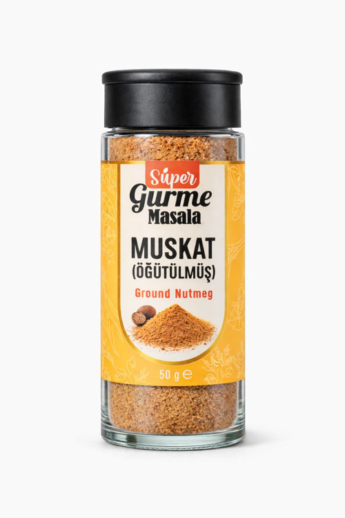 Super Gurme Masala Muskat Tozu 50 g, özenle seçilmiş muskatın öğütülmesiyle hazırlanmıştır. Kendine özgü yoğun aroması ve sıcak baharat karakteri ile tariflere derinlik kazandırır.