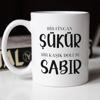 Üzerinde Bir Fincan Şükür Bir Kaşık Dolusu Sabır yazılı seramik kupa. Dilerseniz kendinize, dilerseniz sevdiklerinize hediye için rahatça tercih edebilirsiniz. Kupa Bardak Genel Özellikleri ? Seramik Bardak. ? Parlak dış kaplama. ? Ergonomik tasarım. ? Baskı uzun ömürlüdür. ? Isı transferi tekniği ile baskı yapılır. Not: Elde yıkamanız önerilir. Kupa Bardak Teknik Özellikleri ? Yüksekliği 9cm ? Genişliği 8cm ? Kulp yüksekliği 7,5 cm ? Kulp genişliği 3,5 cm ? Kupa çapı 8cm