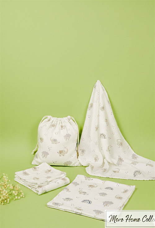 Müslin Bezi Bebek Set 6 Parça 100 % Pamuklu Bulut Filli Gri - Beyaz