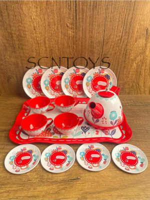 Kutulu 15 Parça Çay Seti Fincan Takımı Metal Evcilik Oyunu Çiçekli Oyuncak Çay Seti Fincan Seti