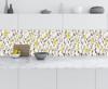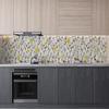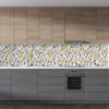 Sticker Art Mutfak Tezgah Arası Folyo Fayans Kaplama Folyosu Beyaz Taşlar Sarı Çiçek 60x500 CM