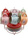 Modares Store Mutfaksultani 81007 6'Lı Standlı Kahve Seti 13 Parça 6 Fincan 6 Tabak 1 Askılı Stand Love Yazılı