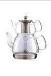 Modares Store Mutfaksultani Carlo Luster Indüksiyon Tabanlı Borosilikat Cam Çaydanlık Takımı 500 Ml Demlik 1500 Ml Suluk
