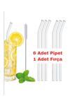 Modares Store Mutfaksultani Straw 6'Lı Şeffaf Cam Eğimli Isıya Dayanıklı Borosilikat Pipet Ve 1 Adet Pipet Temizleme Fırçası