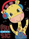 Müzik Dinleyen Zürafa Duvar Stickerı
