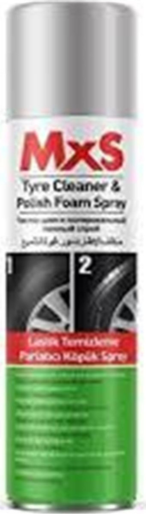 MxS Lastik Temizleme ve Parlatıcı Köpük Sprey Lastik Temizleyici ve Parlatıcı Köpük Spreyi, lastik duvarları için kullanışlı, etkili ve yüksek kaliteli bir bakım ürünüdür. Boyaya, plastiğe, kauçuğa veya metallere zarar vermez.