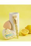 - Limon desenleriyle süslenmiş, şık tasarımıyla dikkat çeken makyaj fırçası seti.