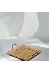 - Kahverengi tonlarındaki metal kulpları ile şıklığı ve fonksiyonelliği bir arada sunan dekoratif hasır servis tepsisi, sofralarınıza sıcak bir dokunuş katıyor.