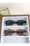 - Oval çerçeve formu ile yüz hatlarınıza zarif bir dokunuş eklerken, siyah camları net görüş sağlar.