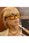 Retro Şık Kare Gözlükler Kadın ve Erkek için - Klasik Sarı, Ayna Lensli, Dayanıklı PC Çerçeve, Günlük Kullanım ve Parti İçin İdeal, Vintage, Moda Stil