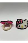 Kız çocukları için sevimli kedicik hello kitty lastik tokalar ikili olarak satılır organik ip ile yapılmış panç nakışı