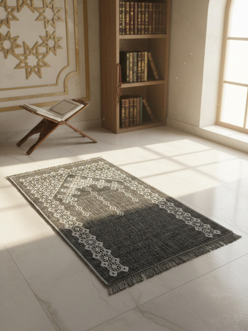 Myevilla My Evilla Seccade Hafif Katlanabilir Yıkanabilir Namazlık Şık Motifli Çeyizlik ve Hediyelik Antrasit