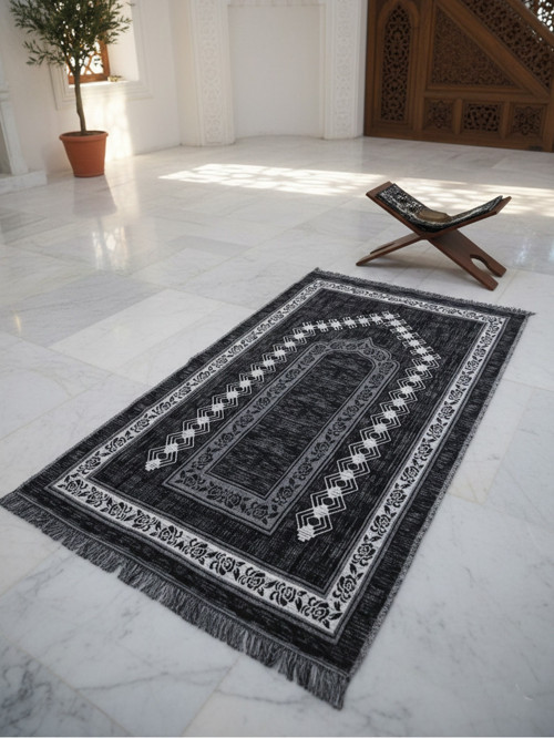 Myevilla My Evilla Seccade Hafif Katlanabilir Yıkanabilir Namazlık Şık Motifli Çeyizlik ve Hediyelik Siyah-Gri