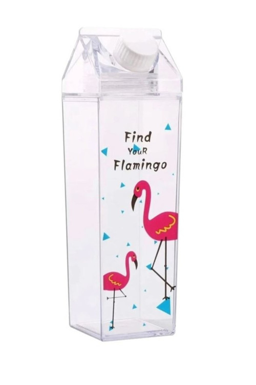 My Style Flamingo 500Ml Mika Süt Kutu Tasarımlı Su Kahve İçecek Şişesi Cam Değildir
