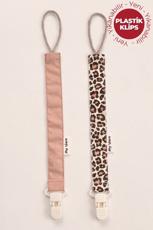 My Vera Vizon - Leopar Emzik Askısı Seti - 2'Li Emzik Zinciri Seti - %100 Pamuk Kumaş