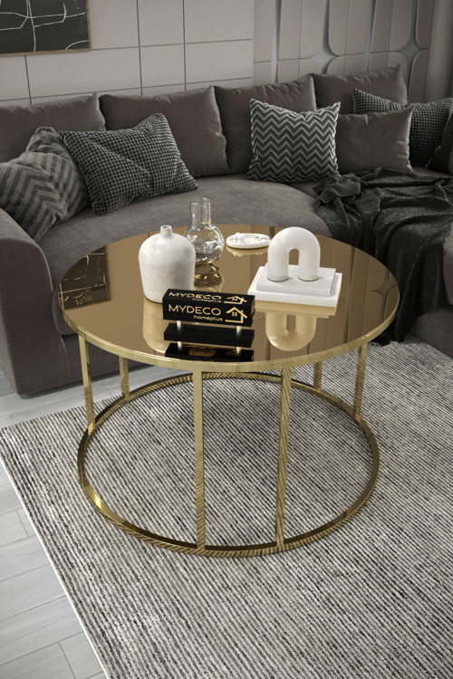 ÜRÜN ÖLÇÜSÜ ÇAP:75CM YÜKSEKLİK:45CM Ürünün ayakları metal üzerine GOLD rengi kaplamalıdır .