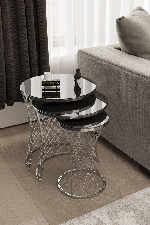 Mydeco Hasır Zigon Sehpa Gümüş Kaplama Füme Ayna
