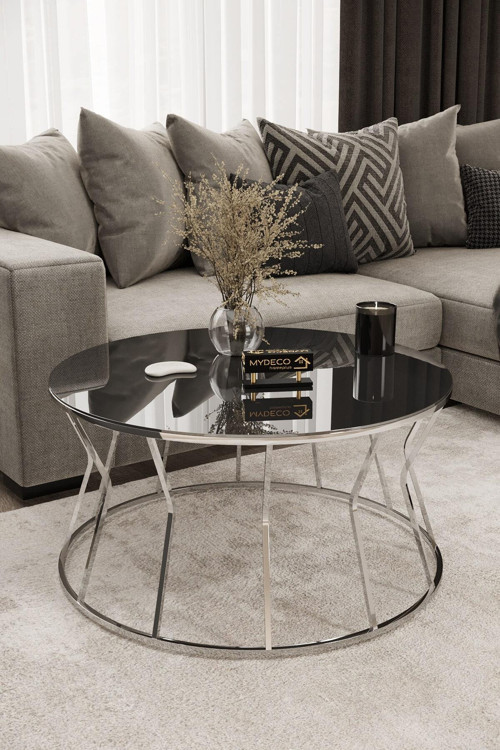 ÜRÜN ÖLÇÜLERİ: ÇAP : 75 CM YÜKSEKLİK : 50 CM Ürünün ayakları metal üzerine GÜMÜŞ rengi kaplamalıdır .