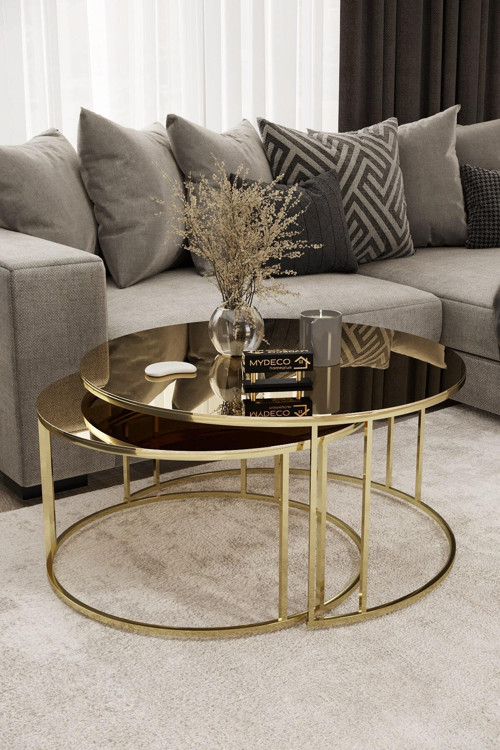 ÜRÜN ÖLÇÜSÜ: BÜYÜK: ÇAP:75CM YÜKSEKLİK:50CM KÜÇÜK: ÇAP:60CM YÜKSEKLİK:45CM Ürünün ayakları metal üzerine GOLD rengi kaplamalıdır .