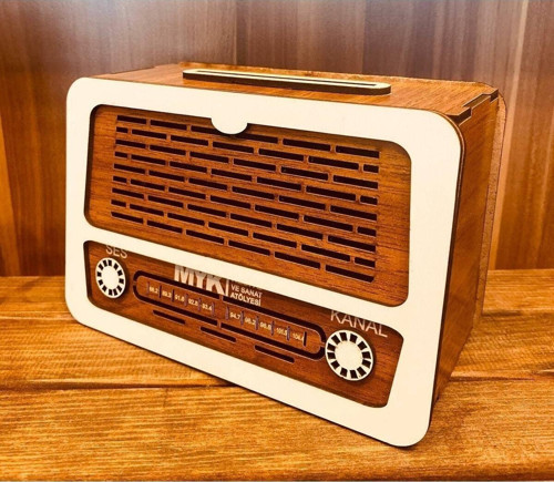 ÜRÜNÜMÜZ NOSTALJİ RADYO GÖRÜMÜYLE KUMBARA OLARAK KULLANIMIN YANINDA DEKORATİF OLARAKDA KULLANIMA UYGUNDUR ÜRÜNÜMÜZ AHŞAP DAN ÜRETİLMİŞ OLUP EN : 17 CM BOY : 11 CM DERİNLİK 6 CM DİR MYK HEDİYE VE SANAT ATÖLYESİ