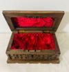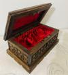 Ceviz ağacı el oyması dekoratif içi kadife döşemeli sandık.