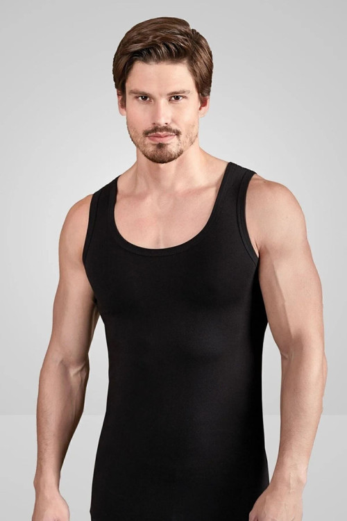 Berrak Erkek Siyah Loklu % 100 Pamuk Klasik Penye Askılı Atlet Berrak / 1022