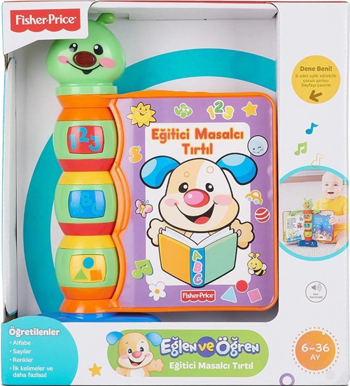 Hikaye kitabı şeklinde biçimlendirilmiş olan Eğitici Masalcı Tırtıl, bebeğinizin temel bilgileri öğrenmesini sağlar. Bebeğiniz her sayfadaki masalın şarkısını, harfleri, sayıları ve renkleri öğrenmek için kitabın sayfalarını çevirir. "Benim Annem”, "Arı Vızvızvız”, "Balıkçı Hasan”, "Baltalar Elimizde”, "Yağmur Yağıyor” ve "Ali Baba’nın Çiftliği” şarkılarını söylerken, bebeğiniz eğlenerek öğrenir. Alfabeyi, sayıları, ilk kelimeleri ve şarkı söylemeyi öğretir.