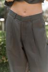Yan dikişte pis dikiş detaylı, pilili, patlı, bol paça, keten karışımlı pantolon.