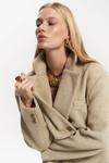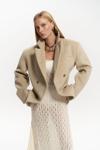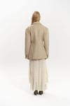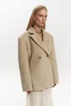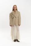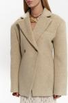 Önü çift düğmeli, belden oturtmalı blazer. Omuzları vatkalı, uzun kollu, manşetleri düğmeli, yalancı cep görünümü. Kruvaze kapama. Astarlı özel dikim.