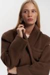 Önü çift düğmeli, belden oturtmalı blazer. Omuzları vatkalı, uzun kollu, manşetleri düğmeli, yalancı cep görünümü. Kruvaze kapama. Astarlı özel dikim.