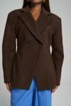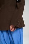Önü çift düğmeli, belden oturtmalı blazer. Omuzları vatkalı, uzun kollu, manşetleri düğmeli, yalancı cep görünümü. Kruvaze kapama. Astarlı özel dikim.