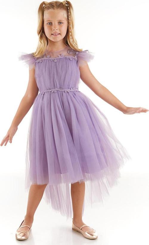 Bisiklet yakalı. Kısa kollu. Kolları tüllü abiye elbise. Belinde ve yakasında zarif nakış detayları bulunur. Kabarık tül eteği, asimetrik kesimi ile önü kısa arkası uzun bir görünüme sahiptir. Arka belinde fiyonk detayı bulunmaktadır. Arkadaki gizli fermuarı sayesinde kolayca giyilip çıkarılabilir. Astarlıdır. Bu elbise, özel günlerde kızınızın vazgeçilmezi olacak.