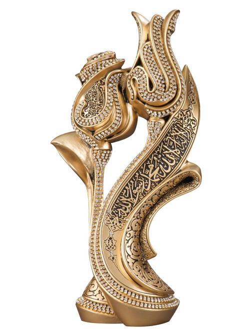 (Peygamberimize salat ve selam olsun.) duasını nakşettik ve rumi desenler ile bezedik. Gülün tezyinatını da zincir kristal taşlarla sağladık.