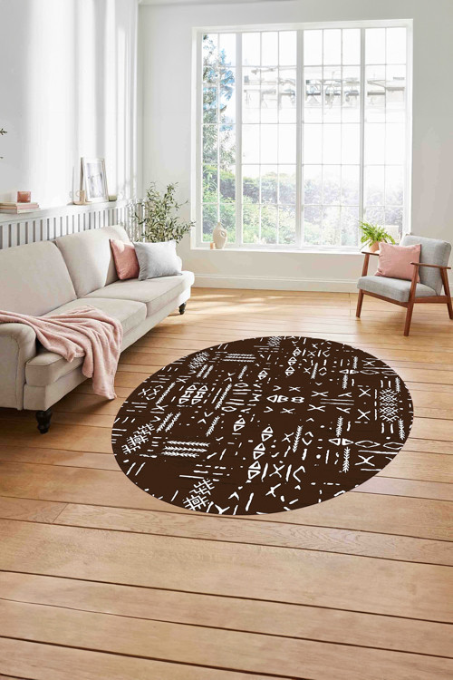 Baskılı İskandinav Sade Modern Yıkanabilir Kaymaz Yuvarlak Mutfak Salon Halısı