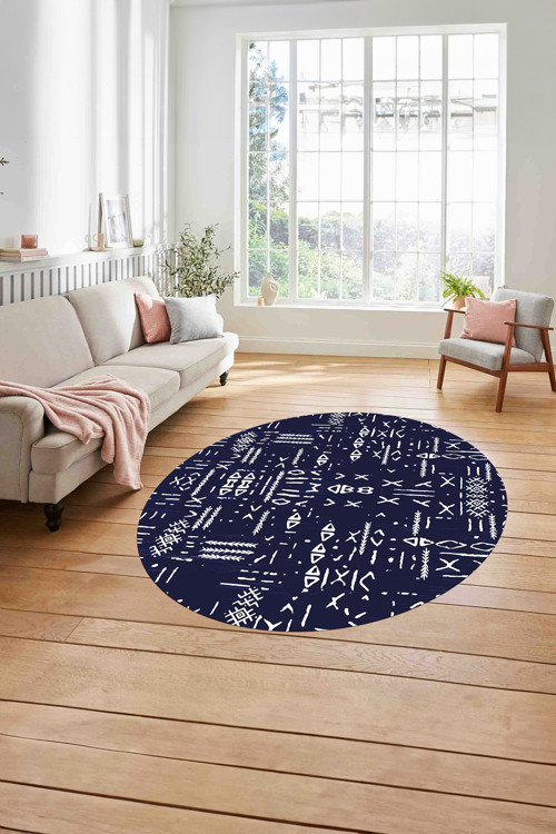 Baskılı İskandinav Sade Modern Yıkanabilir Kaymaz Yuvarlak Mutfak Salon Halısı