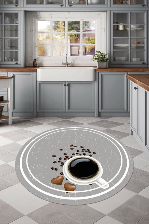 Napoli Home Baskılı Kahve Çekirdeği Desenli Yıkanabilir Kaymaz Taban Yuvarlak Salon Mutfak Halısı