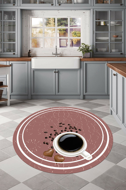 Napoli Home Baskılı Kahve Çekirdeği Desenli Yıkanabilir Kaymaz Taban Yuvarlak Salon Mutfak Halısı