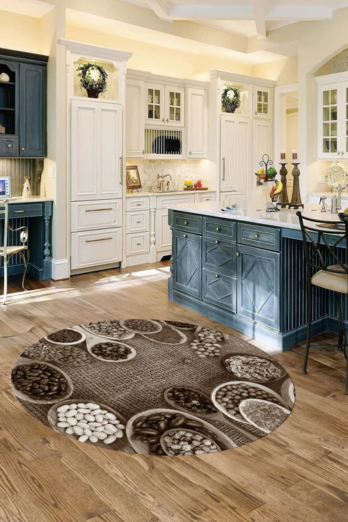 Dijital Baskılı Baklagil Yıkanabilir Kaymaz Taban Yuvarlak Salon Mutfak Halısı