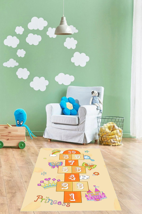 Napoli Home Kaymaz tabanlı, makinede yıkanabilir dijital baskılı çocuk halısı.