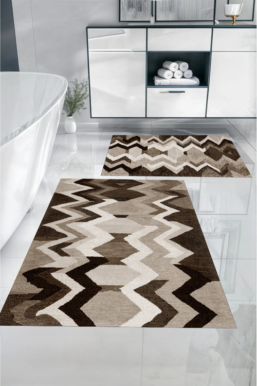 Napoli Home Dijital Baskılı Yıkanabilir Kaymaz Taban Sade Zigzag Model Banyo Paspası Klozet Takımı