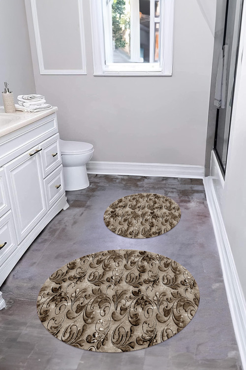 Napoli Home Dijital Yıkanabilir Kaymaz Taban Akrilik Desenli Yuvarlak Banyo Paspası Klozet Takımı