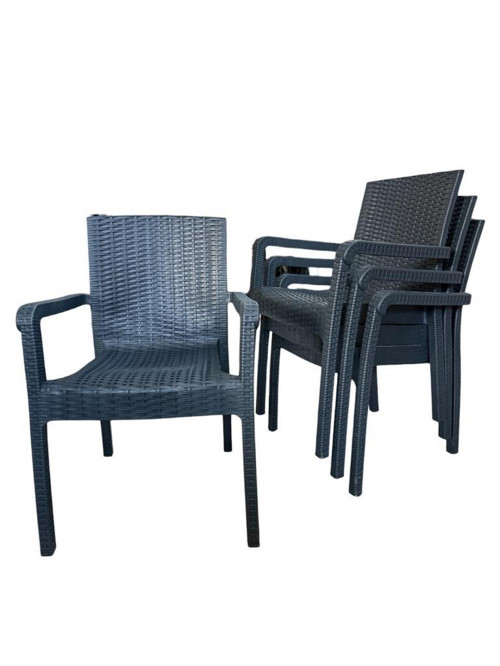 4 Adet Karizma Rattan Kollu Sandalye Koltuk Antrasit