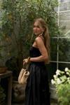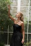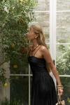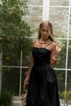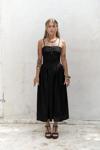 İnce askılı, düz yaka midi elbise. Bel kısmı oturan formda, etek yan büzgü detay, geniş kesim. Astarlı.