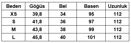 Ürün Beden Tablosu :