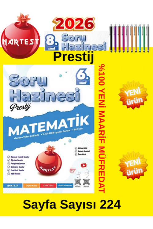 Nartest Yayınevi Nartest 2026 6.Sınıf Matematik %100 Maarif Müfredat Prestij Serisi Soru Hazinesi Soru Bankası+ Kalem