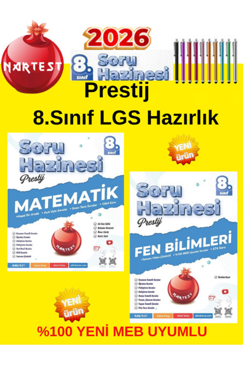 Nartest Yayınevi Nartest 2026 8.Sınıf Matematik-Fen Meb Uyumlu Müfredat Prestij Serisi Soru Hazinesi Soru Bankası
