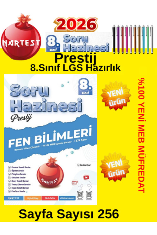 Nartest Yayınevi Nartest Yayıları 8.Sınıf Prestij Fen Meb Uyumlu Müfredat Soru Hazinesi Soru Bankası+Kalem