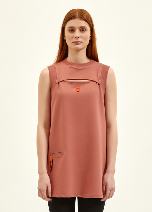 Doğa ilhamlı tasarımıyla, sıcak sonbahar günleri için harika gül kurusu renginde uzun bir üst. Rahat kesime sahiptir, arka omuzda, göğüste yüksek yapılı olağanüstü işleme detayları ve arka kayışta bir marka logosu olan nakışları vardır. Küçük eşyalarını taşıman için mikro görünmez bir ön cebi vardır.