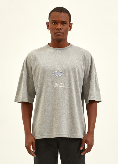 Oversize ve düşük omuzlu kesimi ile, bu unisex tişört her zaman her yerde giyebileceğin ve gardırobunun vazgeçilmez parçalarından biri olacak. Küresel ısınmanın ekosistemi ve tüm canlıları nasıl tehdit ettiğini bize hatırlatan, muhteşem bir bulut ve bitki göğüs nakışı var.